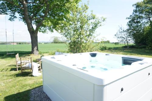 Featuring garden views, Villa Vemmentorp - Äppelblomsvillan 6 min från havet provides accommodation with a garden and a patio, around 41 km from Tomelilla Golfklubb. This property offers access to a terrace, free private parking and free WiFi. The holiday home has an outdoor fireplace and a sauna. The spacious holiday home is equipped with 3 bedrooms, a flat-screen TV with streaming services and a fully equipped kitchen that provides guests with a dishwasher, an oven, a washing machine, a microwave and a toaster. Towels and bed linen are provided in the holiday home. There is also a seating area and a fireplace. Guests can take advantage of the warm weather with the property's barbecue facilities. For guests with children, the holiday home offers outdoor play equipment. Triangeln Shopping Centre is 43 km from Villa Vemmentorp - Äppelblomsvillan 6 min från havet, while Malmo Arena is 44 km away. The nearest airport is Malmo Airport, 21 km from the accommodation.