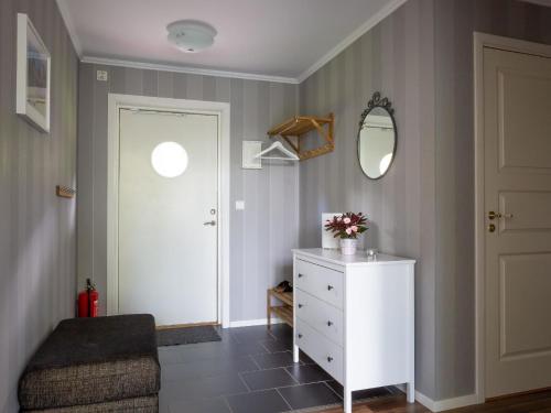 Situated in Tingsryd in the Kronoberg region, Modernes und hell eingerichtetes Haus mit Blick auf einen See has a terrace and sea views. The property is around 46 km from Växjö station, 45 km from Växjö Art gallery and 44 km from Linné Park. With free WiFi, this holiday home features a satellite TV, a washing machine and a fully equipped kitchenette with a dishwasher and oven. The accommodation offers a fireplace. Växjö Cathedral is 44 km from the holiday home, while Växjö konserthus is 45 km from the property. The nearest airport is Ronneby Airport, 39 km from Modernes und hell eingerichtetes Haus mit Blick auf einen See.