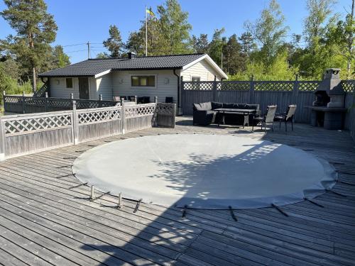 Situated in Oskarshamn, Cozy cottage located 300 meters from a bay features accommodation with a private pool. This property offers access to a terrace and free private parking. Guests can make use of a garden. The 2-bedroom holiday home features a living room with a TV, a fully equipped kitchen with an oven and microwave, and 2 bathrooms with shower. For added privacy, the accommodation features a private entrance. The nearest airport is Kalmar Airport, 76 km from the holiday home.