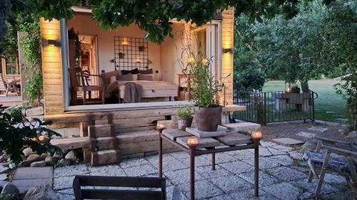 Boasting a private entrance, this air-conditioned holiday home features 1 bedroom and 1 bathroom with a shower. Meals can be prepared in the kitchenette, which has a stovetop, a refrigerator, kitchenware and a microwave. The holiday home features a seating area, a dining area, a wardrobe as well as a terrace with garden views. The unit has 2 beds.