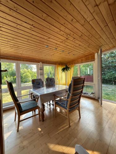 Situated in Urshult in the Kronoberg region, Egen stuga nära Åsnen, Tallbacken features accommodation with free WiFi and free private parking. This holiday home features a garden. The holiday home with a patio and garden views has 2 bedrooms, a living room, a flat-screen TV, an equipped kitchen with an oven and a microwave, and 2 bathrooms with a bath. The property has an outdoor dining area. The nearest airport is Ronneby Airport, 50 km from the holiday home.